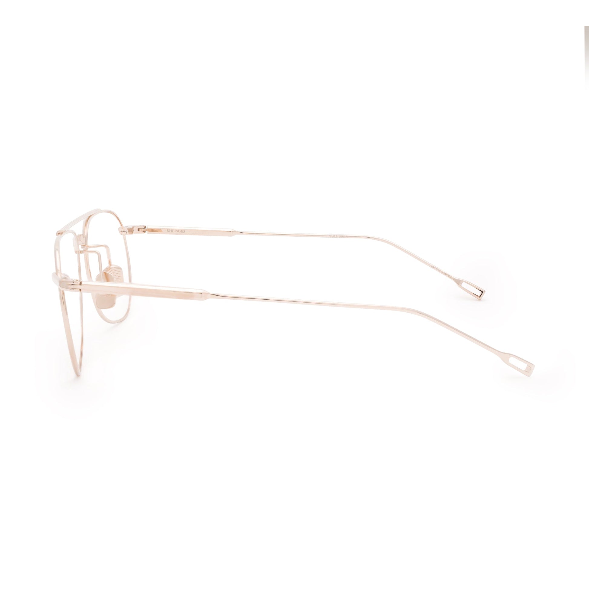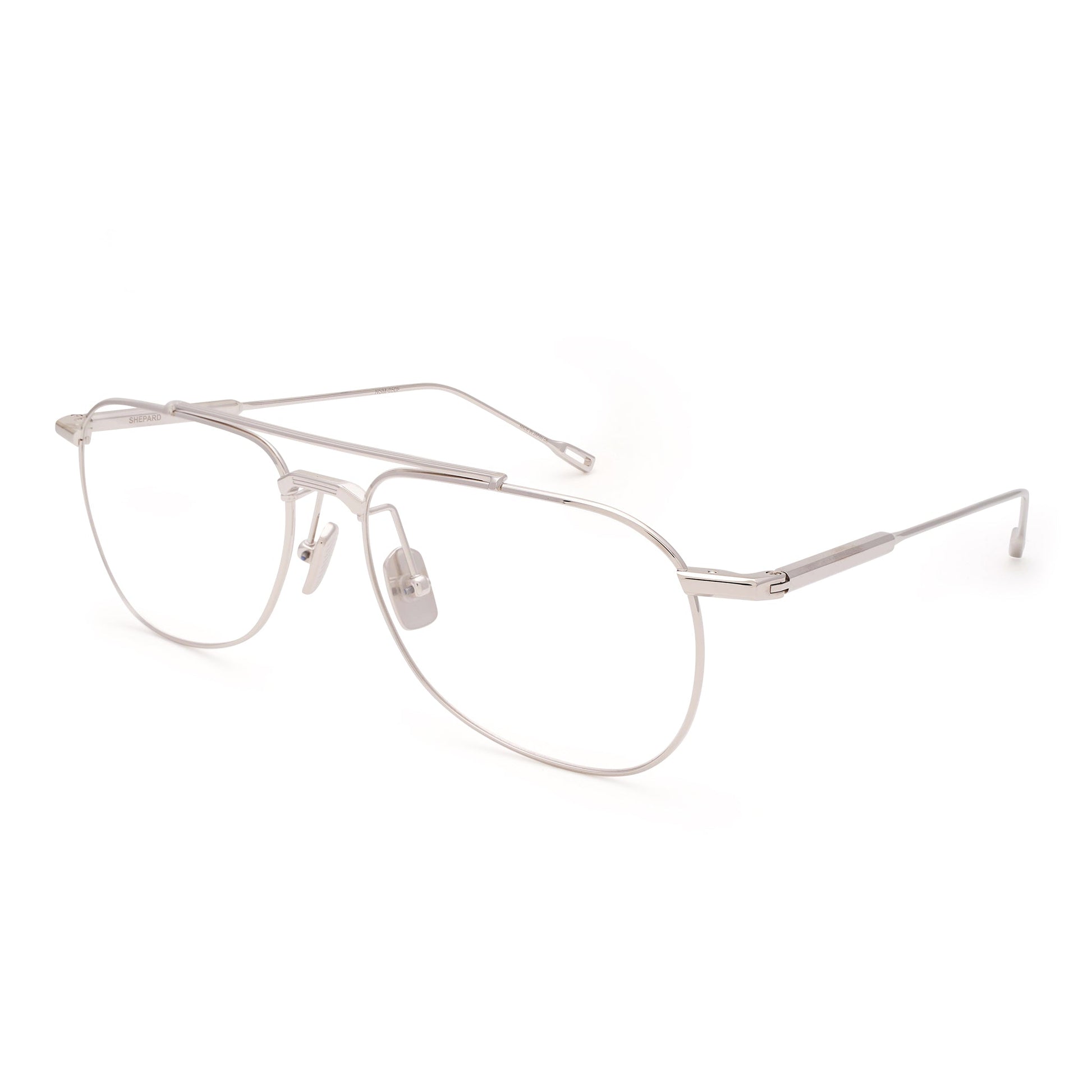 An angular aviator designed to honor the maverick spirit of the moonwalking astronaut Alan Shepard-a pioneer who always looked to the skies for motivation. Squared off and tapered with a high, narrow nose bridge for optimal strength and fit.
